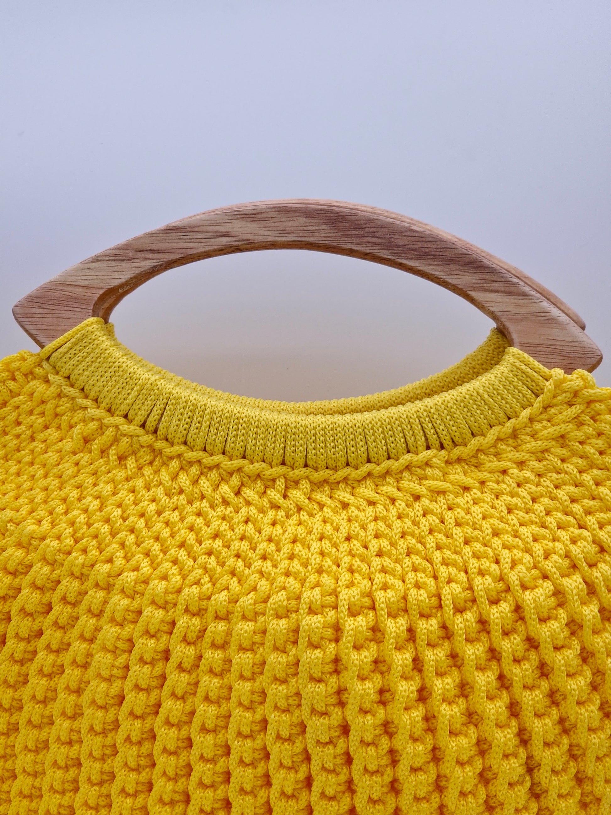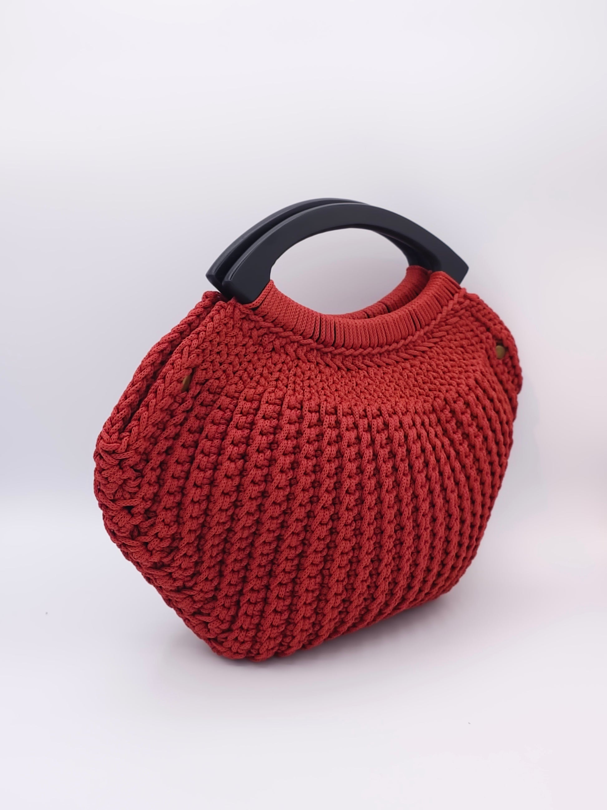 This unique piece is meticulously crocheted with a stunning ribbed pattern, giving it a textured, undulating appearance. The bag is made from durable, corded yarn, ensuring a structured look perfect for daily use.